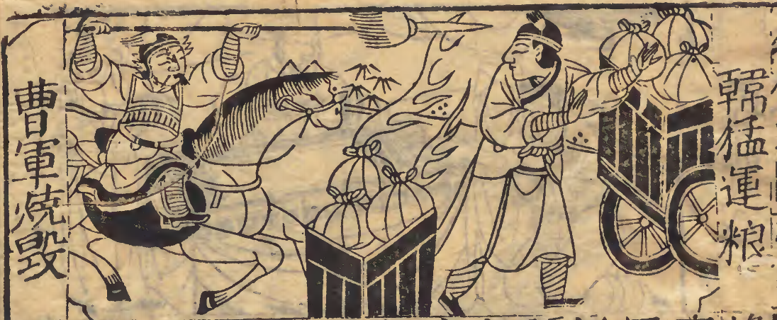Quân Tào đốt lương của Hàn Mãnh. Bản in Tam quốc diễn nghĩa năm 1605