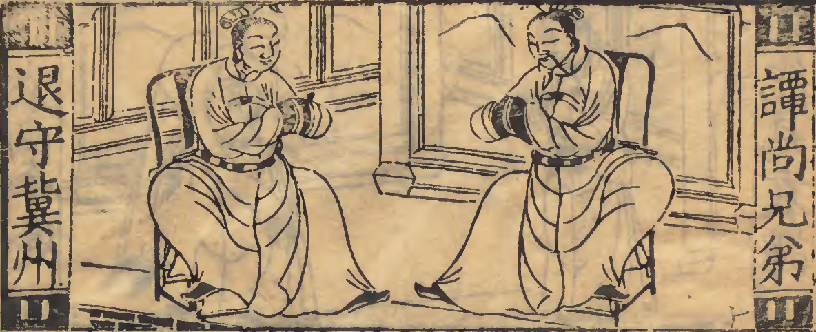 Viên Đàm Viên Thượng tranh Ký Châu. Bản in Tam quốc diễn nghĩa năm 1591