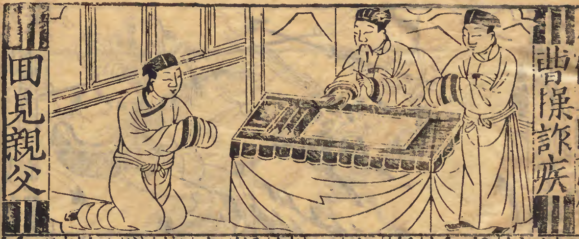 Tào Tháo nói chuyện với Tào Tung. Bản in Tam quốc diễn nghĩa năm 1605